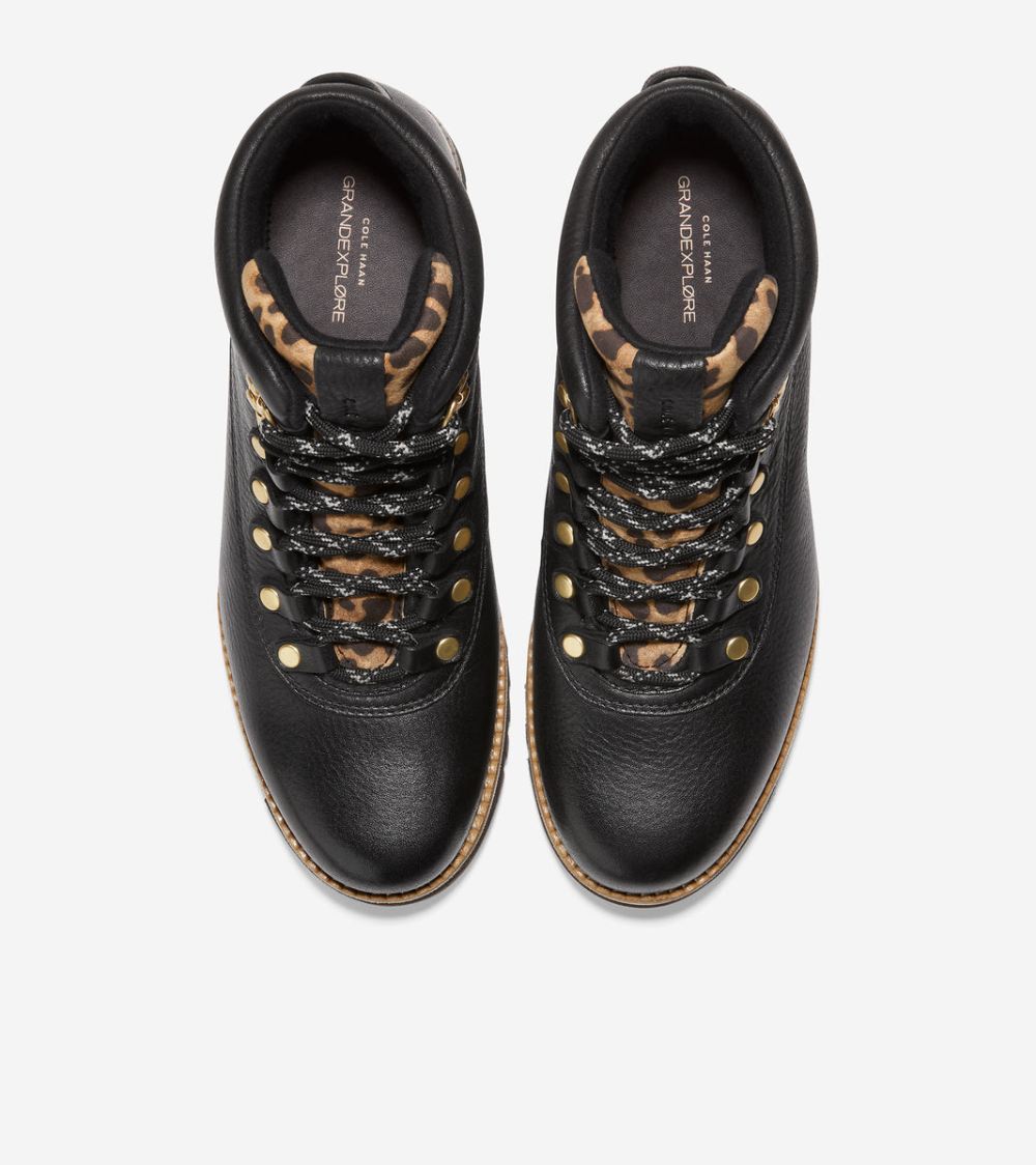 Cole Haan Free Shipping Women's ZEROGRAND Explore Getaway Hiker Boot - Black-Leopard Print72gcWU