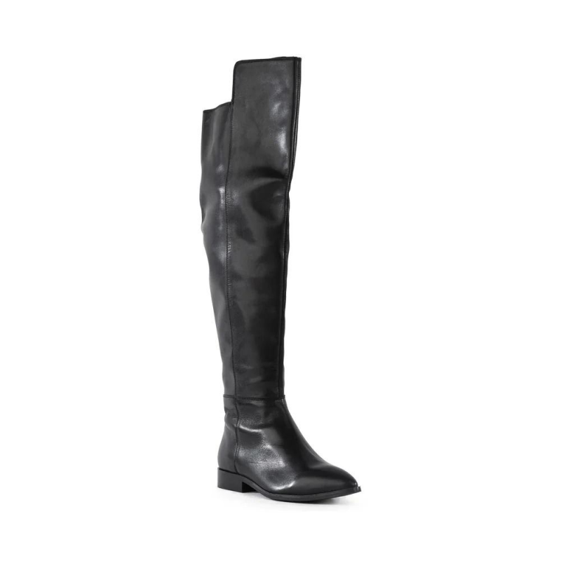 A quick, cool, and oh-so-chic way to stay warm. These thigh-high, over-the-knee boots are made with genuine smooth grain leather and feature a pointed toe flat silhouette that can be worn dressed up or down. A hidden elastic gusset and lower half zipper on the inner side lets you slip these OTK boots on and off with ease.