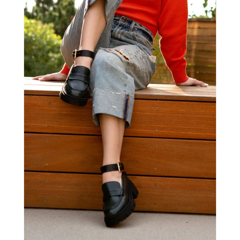 Edgy and romantic with a dash of prep, these chunky lug sole loafers feature an extra special ankle strap with an adjustable buckle closure.