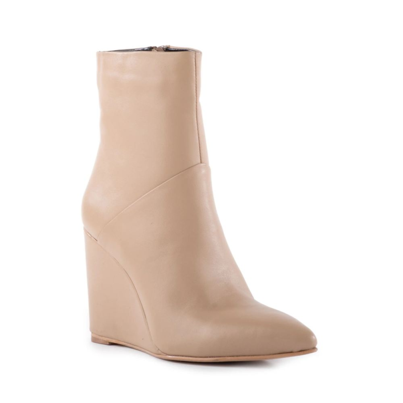 Indulge in the daring allure of these romantically edgy booties. With a stretchy shaft, pointed toe, and a wrapped wedge heel, these boots exude modernity and style.