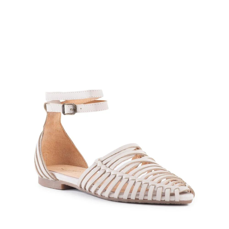 Artisanal woven details are the hallmark of these strappy open weave sandals. Taking inspiration from the classic huarache, these two-piece flats are modernized with a double wrapping ankle strap and pointed toe silhouette. Leather linings and padded insoles ensure an extra comfortable fit.