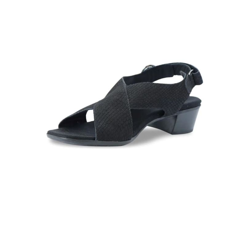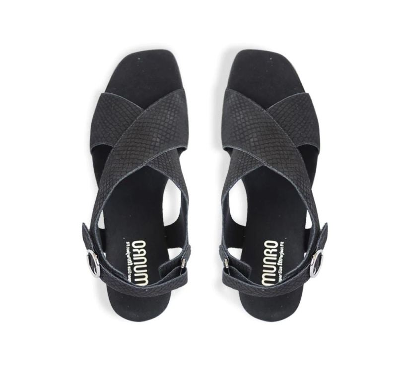 Munro Sandals | Women's Jenny-Black Lizard Print Nubuck | Quick Ship!