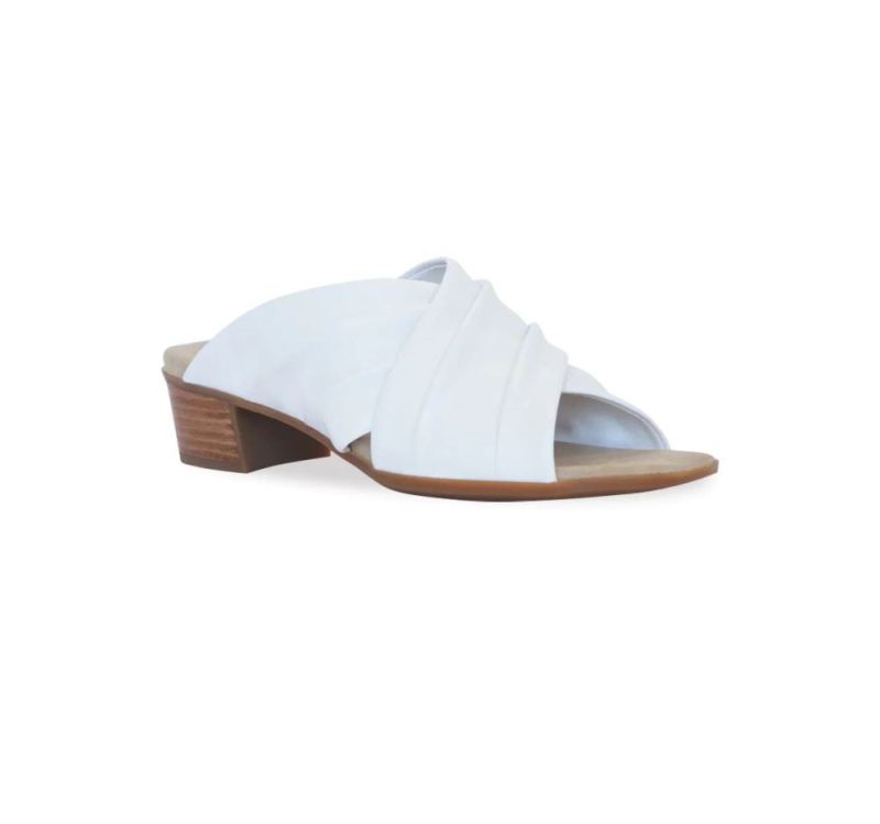 The Lee is a ruched crossband slide sandal made with soft lamb leather on a new outsole unit for 2022. The latex rubber unit has a square toe shape with a mid-heel height that is both alluring and ultra comfortable.