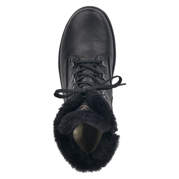 Enjoy the cold days! You'll be cool and casual, yet stylish, with these jet black remonte lace-up boots made of smooth leather. Despite the lacing, the shoe can be easily closed by the zipper. The quilted shaft harmoniously rounds off the look of the shoe. The flexible and cushioning profile sole ensures sure-footedness and the exchangeable footbed provides a pleasant feeling underfoot. The model is cut in comfort width and is also optionally available in oversizes. Thanks to the water-repellent upper material, protection against wetness and wind is provided, while the insole with thermal effect ensures warm feet. Cozy and very warm virgin wool keeps the feet warm all day long. It doesn't get any more comfortable than this!