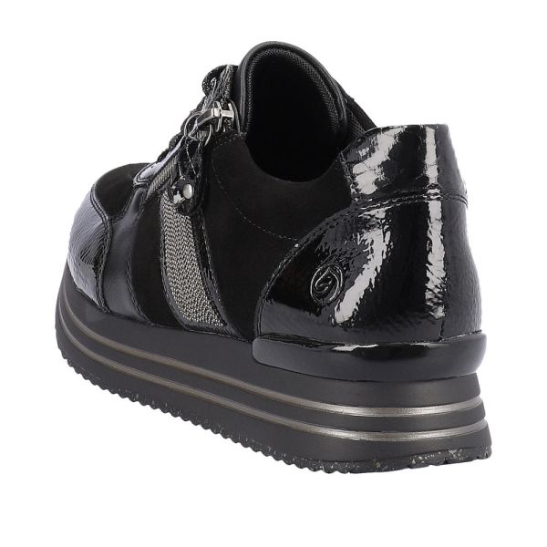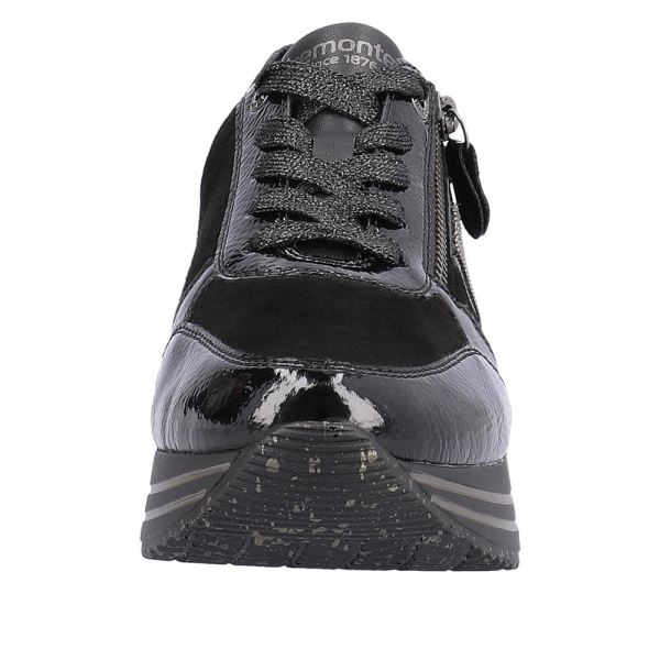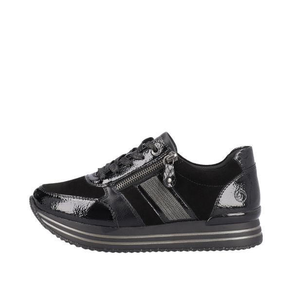 Style and comfort - the dream team of the season! These remonte sneakers are made of high-quality smooth suede leather and come in night black. The lacing complements the zipper for functionality and comfort. The design is complemented by the exchangeable footbed together with an especially light and flexible platform sole. Thanks to the comfort width, the shoe not only offers enough space in the forefoot area, it is also available in oversizes. The microvelour lining ensures an absolutely comfortable feeling underfoot. Jackpot!