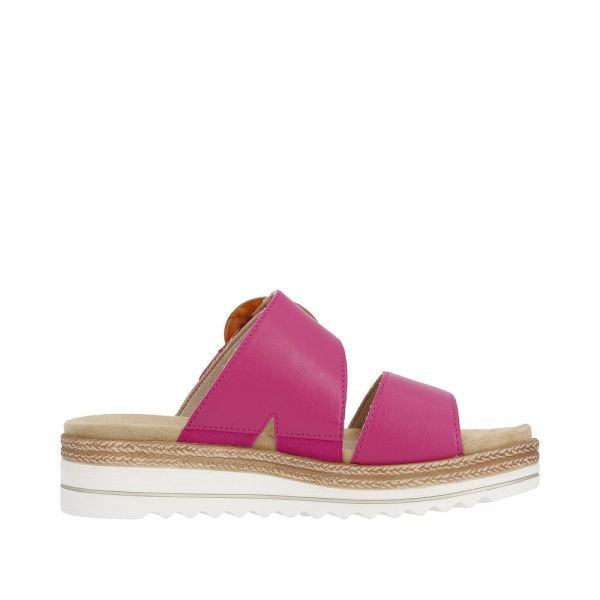 Trendy! These magenta remonte mules made of smooth leather are absolute allround talents! The model is put on in no time thanks to a hook and loop fastener. The decorative buckle adds that certain something. The soft exchangeable footbed meets a flexible and especially light sole that ensures the best grip even on slippery surfaces. For all ladies with size 45, these mules are also available in oversizes. The microvelour lining is light and breathable. Perfect style, perfect comfort - perfect summer!