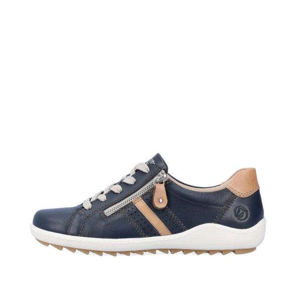 Modern style can be comfortable! These dark blue lace-up shoes by remonte made of smooth leather know how to convince. The clever combination of lacing and zipper gives optimal support and makes it easy to put on and take off the shoe. A flexible and cushioning profile sole and the extra soft exchangeable footbed are further arguments for these lace-up shoes. The micro suede lining is not only super comfortable, but also breathable, making it pleasant to wear all day long. The model is cut in comfort width and optionally available up to shoe size 45. Jackpot!