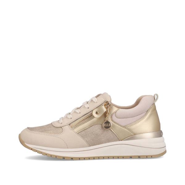 remonte by ELLE! These beige sneakers by remonte made of imitation leather are part of the remonte by ELLE collection. They have everything a comfortable shoe needs: the clever combination of lacing and zipper gives optimal support and makes it easy to put on and take off the shoe. The extra soft exchangeable footbed and the light profile sole are great goodies on top. Thanks to the light micro suede lining, ideal comfort is guaranteed! For all ladies with size 45, these sneakers are also available in oversizes. Fashion in Bestform with remonte and ELLE!