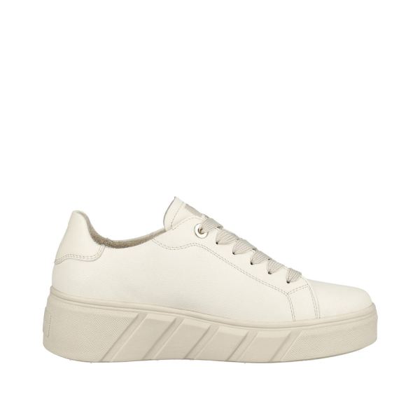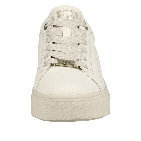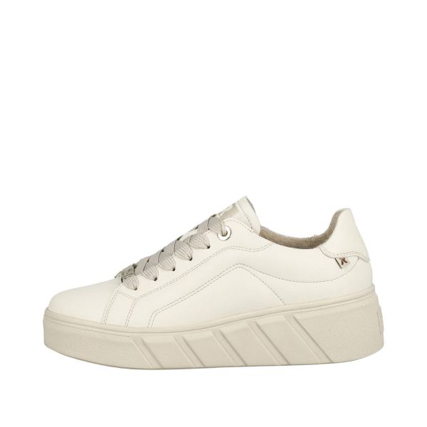 Rieker EVOLUTION - small details make the big difference! These white Rieker EVOLUTION sneakers made of smooth leather are simply classy and cool. In addition, ideal support and a good fit are guaranteed by the lacing. With the shock-absorbing and very light platform sole, your feet will be pampered at every step. The design is complemented functionally by the padded and removable insole. For all ladies with large feet, the sneakers are also available in oversizes. Simply easy going!