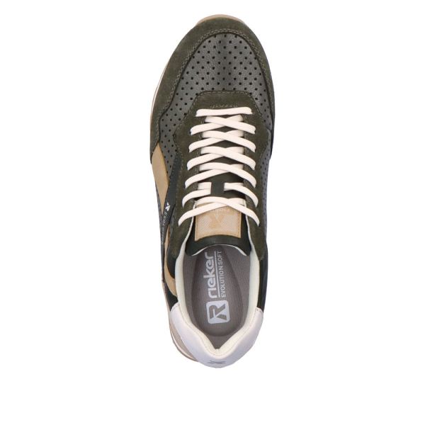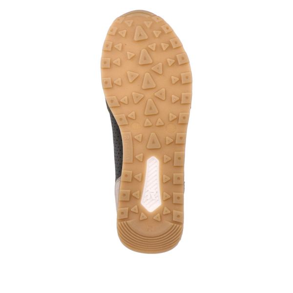 A dream trio: style, comfort and function! These green Rieker EVOLUTION sneakers made of smooth leather bring a real sense of well-being. The bright lacing also makes the shoe perfectly adjustable. With the grippy and light sole, sure-footed walking is a matter of course. A functional and comfortable plus is the padded and removable insole. The comfort width G 1/2 gives the toes more freedom of movement. The sneakers are equipped with a light microvelour lining. Maximum performance!