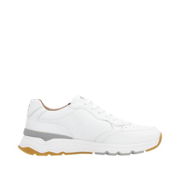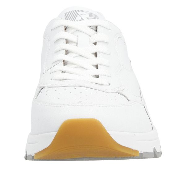 Comfortable and practical! These Rieker EVOLUTION sneakers made of smooth leather are loved by those who like timeless white and comfort. The lacing ensures that the shoe always fits accurately. The sole is both flexible and super light, offering a double sense of well-being at every step. Functional, comfortable and simply practical - this aptly describes the padded and removable insole. The model ensures additional freedom of movement for the foot, as it is cut in comfort width G 1/2. The sneakers are equipped with a cozy leather lining. Get dressed and go on adventures!