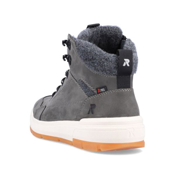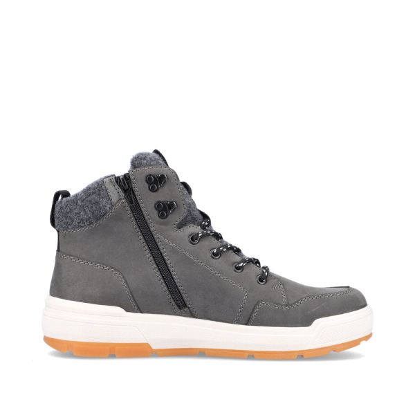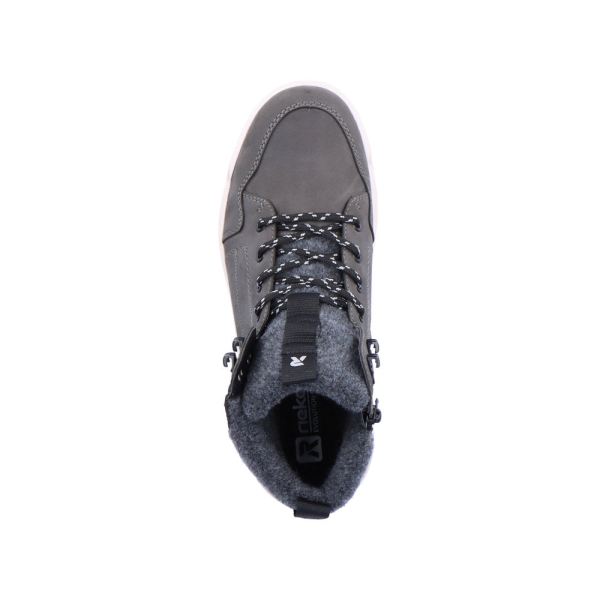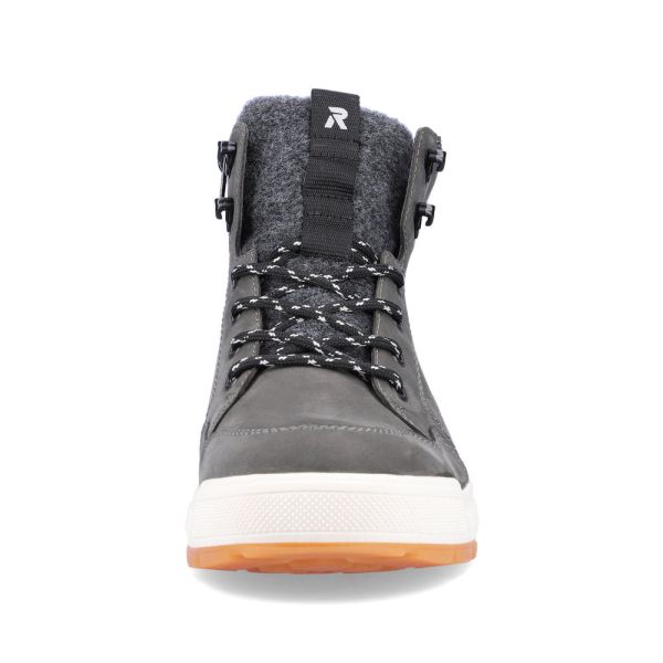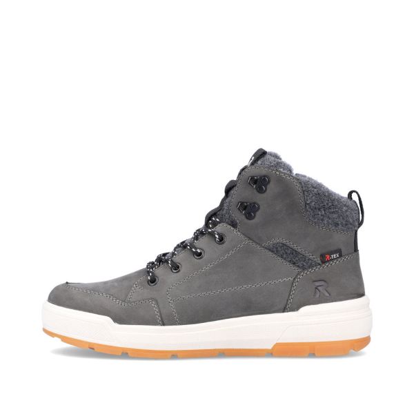 Design meets function! Be fashionable on the road with these comfortable grey boots made of suede leather by Rieker EVOLUTION. The lacing is complemented by the zipper and thus guarantees optimal support and ideal fit. The light profile sole provides good support. The padded and removable insole is the practical comfort feature par excellence. The model is cut in comfort width G 1/2. Thanks to the water-repellent RiekerTEX membrane, the best comfort is ensured even on wet and cold days. More is not possible!