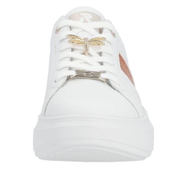 The perfect fusion of style, comfort and function! These Rieker EVOLUTION sneakers made of smooth leather are loved by those who like timeless white and comfort. In addition, the lacing ensures that the shoe fits best at all times. The ultra-light and flexible sole additionally pampers the feet at every step. The padded and removable insole is the practical comfort feature par excellence. The shoe is lined with lightweight microvelour that is breathable. Very cool!