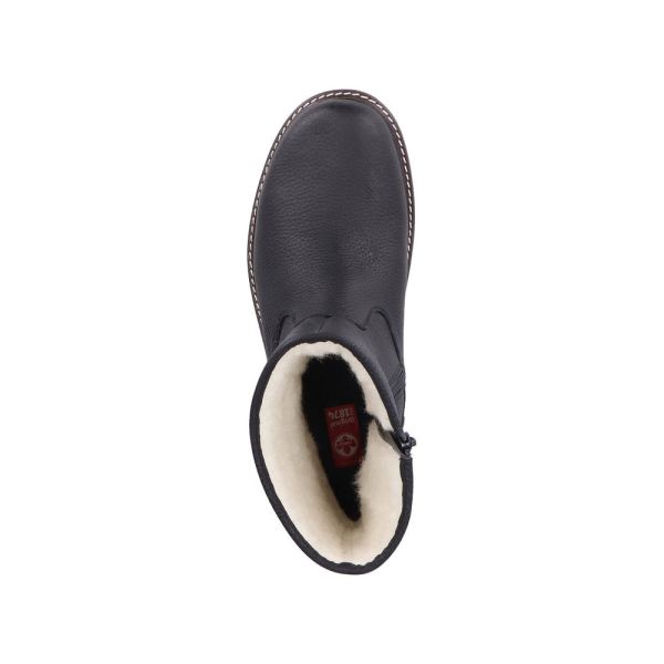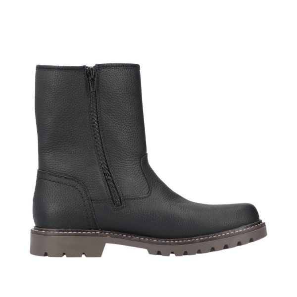 Never cold feet again! These asphalt black ankle boots made of smooth leather are the perfect companion for any occasion. The zipper allows for the shoe to be put on very quickly. The robust profile sole provides sure-footedness on different paths. Another plus is the extra soft cover sole. The model ensures additional freedom of movement for the foot, as it is cut in comfort width G 1/2. Thanks to the RiekerTEX technology, wet days are no problem and even icy surfaces can be traversed with more grip thanks to the Fiber-Grip sole. Cozy and very warm virgin wool keeps the feet warm all day long. So let's get going!