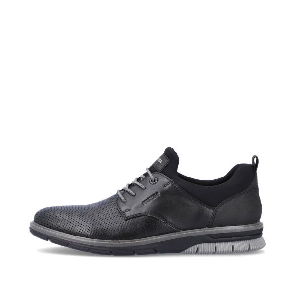 Comfortable and practical! These asphalt black shoes made of smooth leather by Rieker guarantee a heavenly feeling. The elastic insert makes it easy and comfortable to put on and take off the shoe. The robust profile sole convinces all along the line and the extra soft cover sole provides additional comfort. Furthermore, the comfort width G 1/2 offers your feet more freedom of movement in the forefoot area. Nothing stands in the way of long walks!