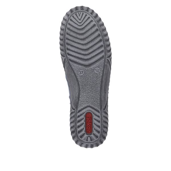 Comfortable and good-looking - it works! These pacific blue slippers by Rieker have been intricately crafted. The shoe can be put on very quickly thanks to the side zipper. The decorative eyelets on the side give the shoe that certain something. Their robust profile sole prevents unwanted slipping and the cover sole is extra soft. Simply top!