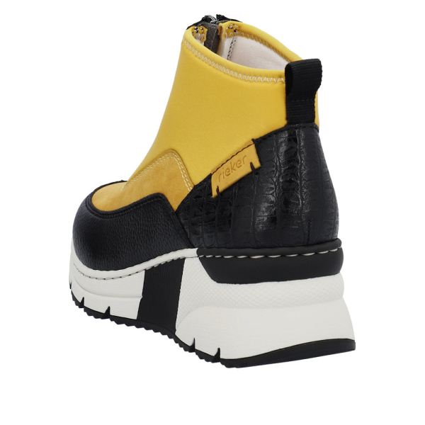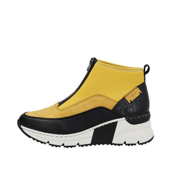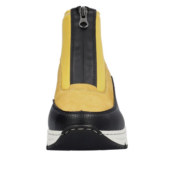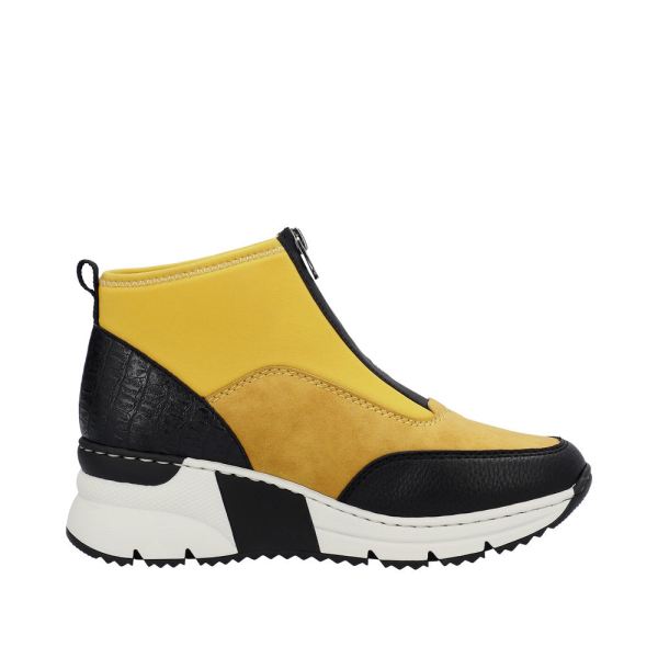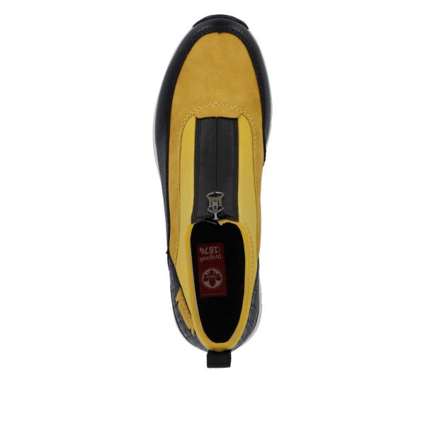 Easy walking, easy living! These mango yellow slippers by Rieker impress with their modern design and high comfort. The zipper together with the elastic insert make it easy to put on and take off the shoe. The sole with wedge heel is both light and shock-absorbing, offering a double sense of well-being with every step. The slippers have a removable insole that is like holiday for your feet! The comfort width G offers enough space for the feet to feel comfortable even when worn for longer periods. Simply top!