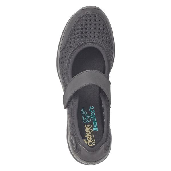 Rieker Quick Ship Women's shoes | Style L32B5 Casual Ballerina with Strap - Blackmc4D36