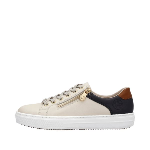 Rieker Quick Ship Women's shoes | Style L59A1 Athletic Lace-up with zip - Beige Combination