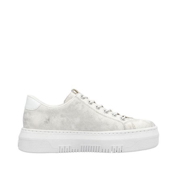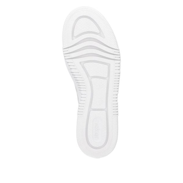 Fashionable must-have! These casual grey-white sneakers by Rieker are cozy companions on all your paths. Despite a lacing, the shoe can be easily closed by the zipper. With the ultra-light and flexible platform sole, your feet will enjoy the best walking experience at every step. In addition, the extra soft removable cover sole provides an extra portion of comfort. Simply top!