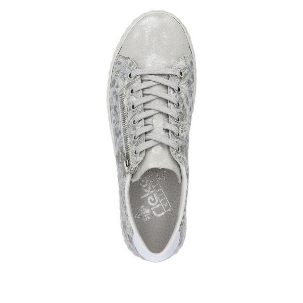 Rieker Quick Ship Women's shoes | Style N0900 Athletic Lace-up with zip - Silver\/Platinum
