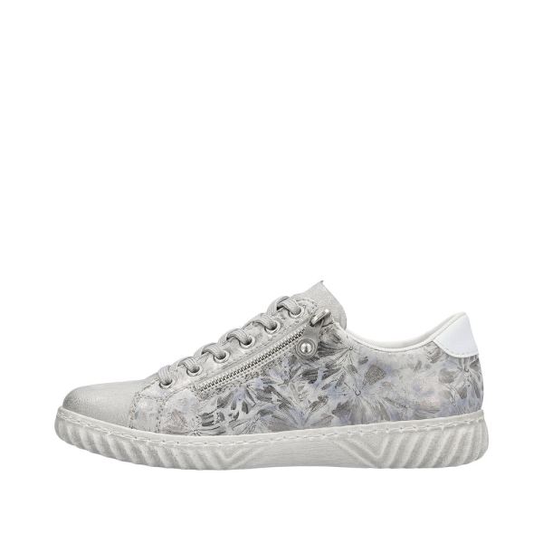 Rieker Quick Ship Women's shoes | Style N0900 Athletic Lace-up with zip - Silver\/Platinum